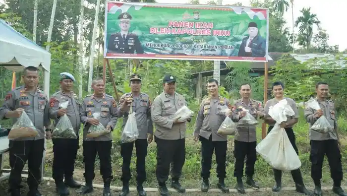 Polres Indragiri Hulu (Inhu) memanen ikan hasil kolaborasi dengan masyarakat di Kelurahan Kampung Besar Seberang, Kecamatan Rengat. Sebanyak 2 ribu ekor ikan berhasil dipanen.