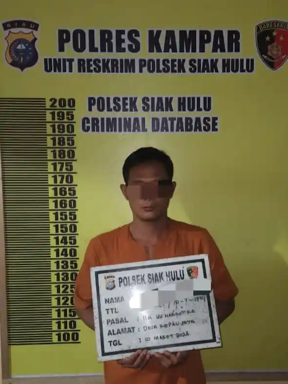 Kampar - AM (32) tidak hanya bisa pasrah saat ditangkap Polsek Siak Hulu, pasalnya ia ditangkap karena peredaran Narkoba jenis sabu-sabu di Kampung Baru Desa Kepau Jaya Kecamatan Siak Hulu Kabupaten Kampar, Senin (9/3/2026) sekira pukul 22.00 Wib.
