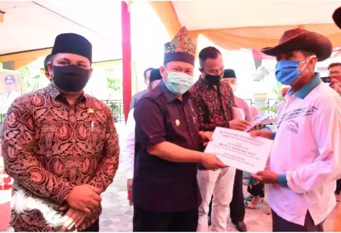 Bupati Kampar Serahkan 1,5 Ton Benih Padi Unggul dan BLT kepada Warga Pulau Birandang