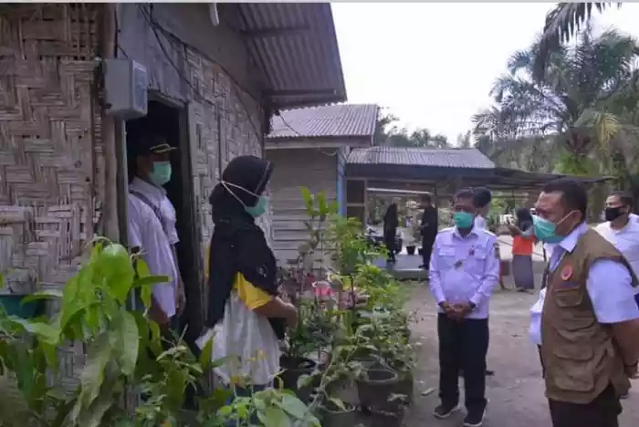 Janda Bersama Tiga Anak Yatim Tinggal di Gubuk Anyaman Bambu Dikunjungi Bupati Kampar