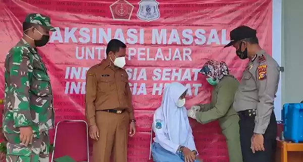 Ratusan Pelajar SMK Negeri 1 Rambah Lakukan Vaksinasi Covid 19