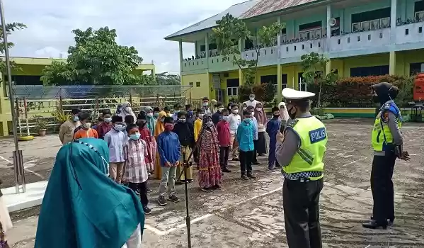 Agar para siswa dan pelajar memahami tentang aturan berlalu lintas di jalan raya sebagaimana diamanatkan oleh UU no 22 tahun 2009 tentang Lalu Lintas dan Angkutan Jalan, Satlantas Polres Rokan Hulu menggelar kegiatan Polisi Goes to School.
