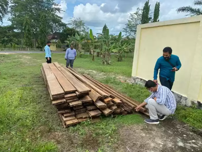 UJUNGTANJUNG- Patroli Rutin yang dilakukan Tim Gabungan Polres Rokan Hilir dan Polsek Rimba Melintang Rabu 17 Nopember 2021, akhirnya berhasil menemukan 96 keping kayu atau sekitar 4 kubik.
