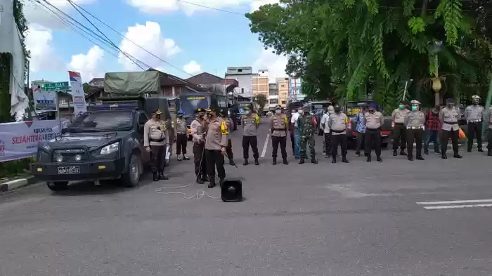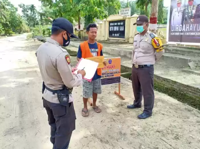 TANAH PUTIH -Dalam rangka penegakan disiplin Protokol Kesehatan (Prokes) Polsek Tanah Putih, Polres Rokan Hilir bersama Koramil Tanah Putih melaksanakan operasi yustisi protokol kesehatan di sejumlah Pertokoan dan Pelaku Usaha di Jl. Lintas Riau - Sumut