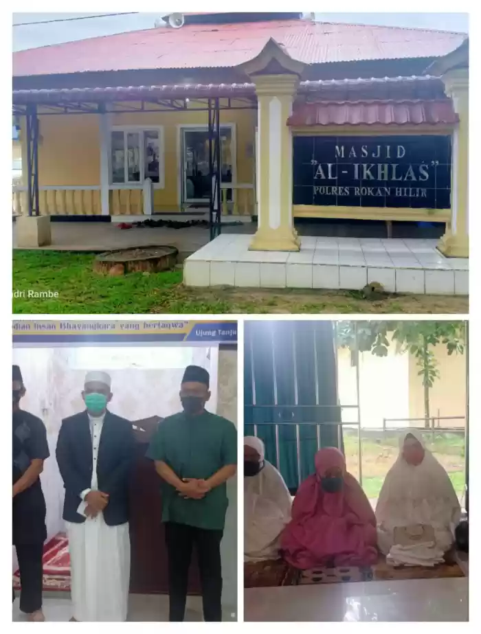 UJUNGTANJUNG- Kapolres Rokan hilir AKBP Nurhadi Ismanto SH.S.I.I dan Ibu ketua cabang Bayangƙari beserta staf laksanakan sholat Aidil adha di masjiɗ Al-Ikhlas Polres Roƙan Hilir Jumat 31 Juli 2020 dengan penuh kesederhanaan dan kerendahan hati.