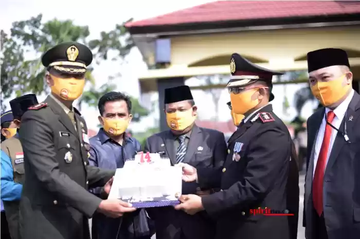 ROKAN HILIR-Kejutan menarik mewarnai acara menyambut HUT Bhayangkara ke-74 di Mapolres Rokan Hilir, Rabu (20/7/2020). Puluhan prajurit TNI dari Koramil 02 Tanah Putih Kodim 0321 Rokan Hilir menaiki sepeda motor 'menggeruduk' mapolres setempat.