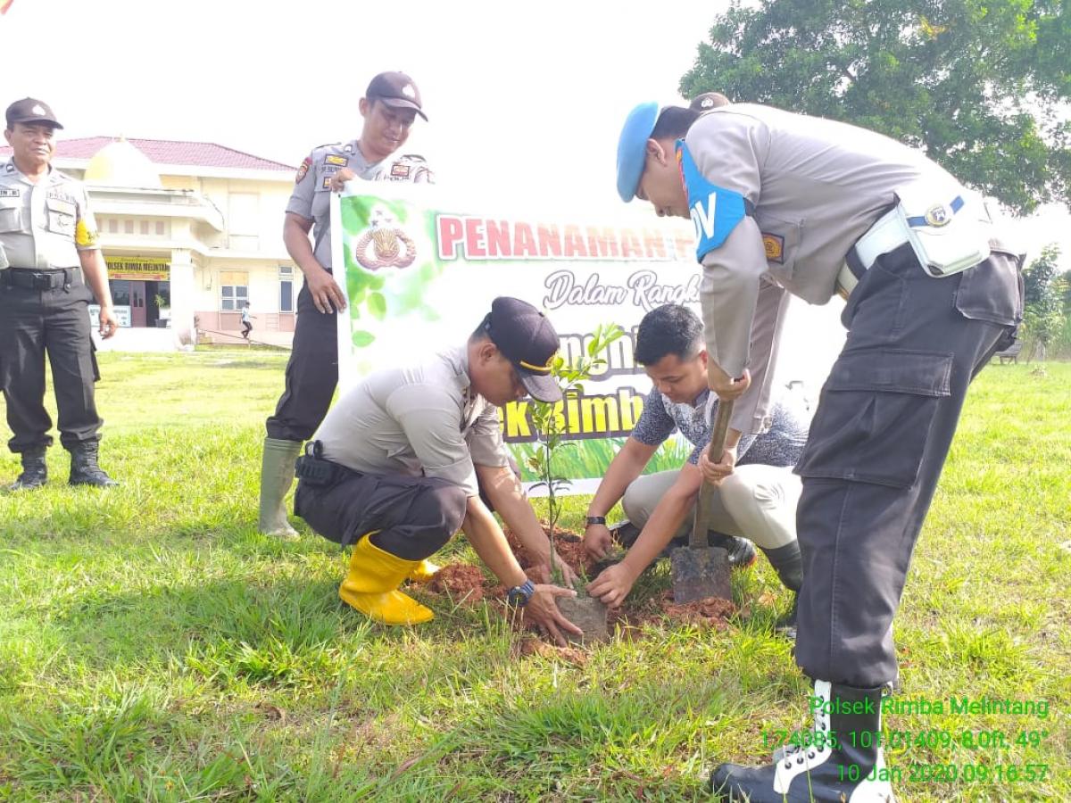 ROKANHILIR - Peduli terhadap penghijauan, jajaran Polsek Rimba Melintang melakukan gerakan menanam pohon. Jumat 10/1/2020.