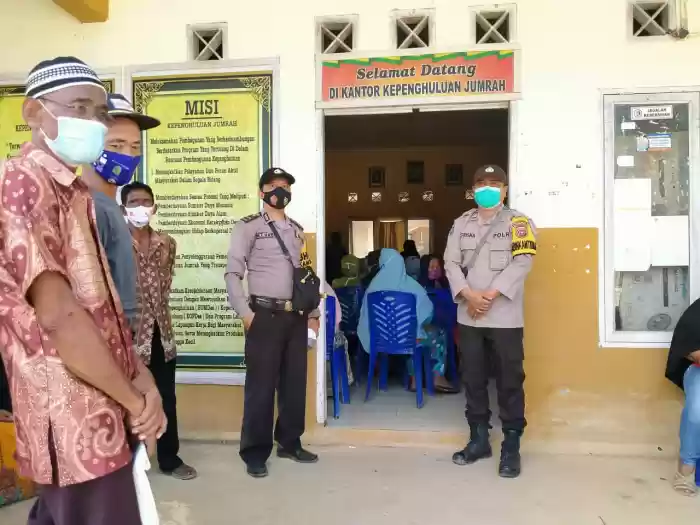 RIMBA MELINTANG - Polsek Rimba Melintang Laksanakan Kegiatan Pengamanan Pendistribusian Bantuan Sosial Tunai ( BST ) Kemensos Tahap II Tahun 2021.