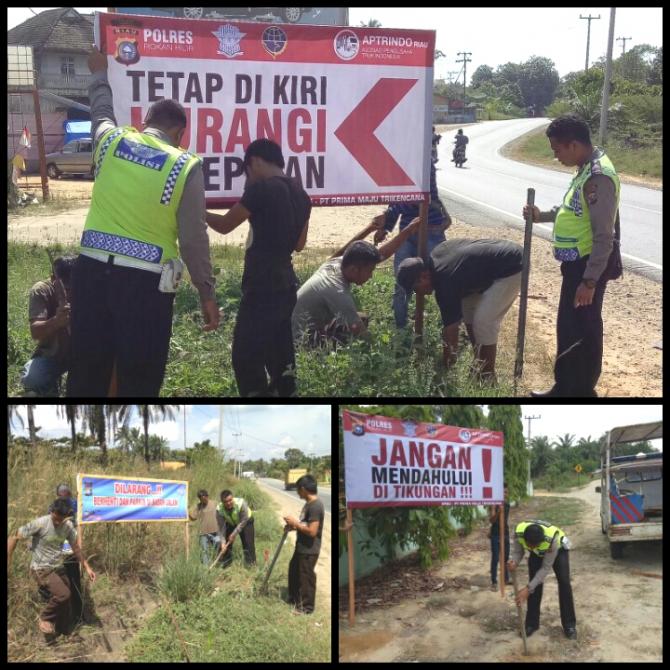 BAGANBATU - Sebagai upaya meminimalisir kecelakaan lalu lintas, Sat Lantas Polres Rohil memasang rambu - rambu himbauan disejumlah titik r