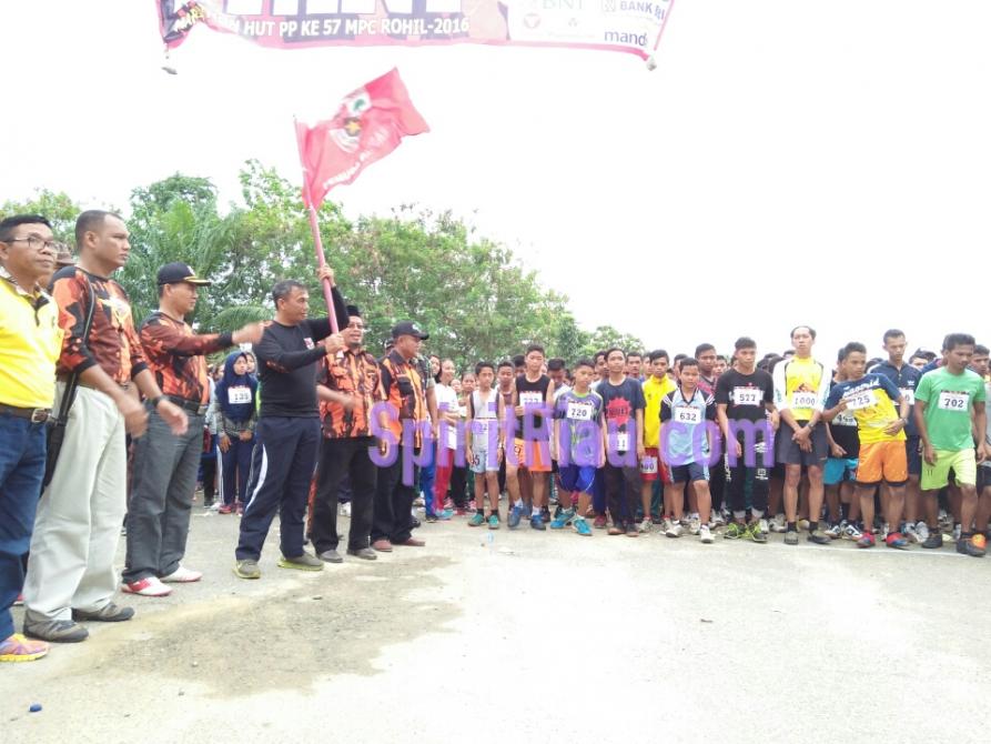 BAGANBATU - Lomba lari Maraton 10 kilometer yang ditaja MPC Pemuda Pancasila kabupaten Rokan Hilir (PP-Rohil) bersempena H