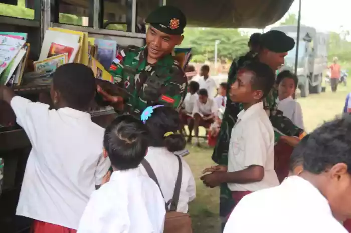 Perpustakaan Keliling Tentara Kembali Datangi Sekolah di Perbatasan RI-PNG